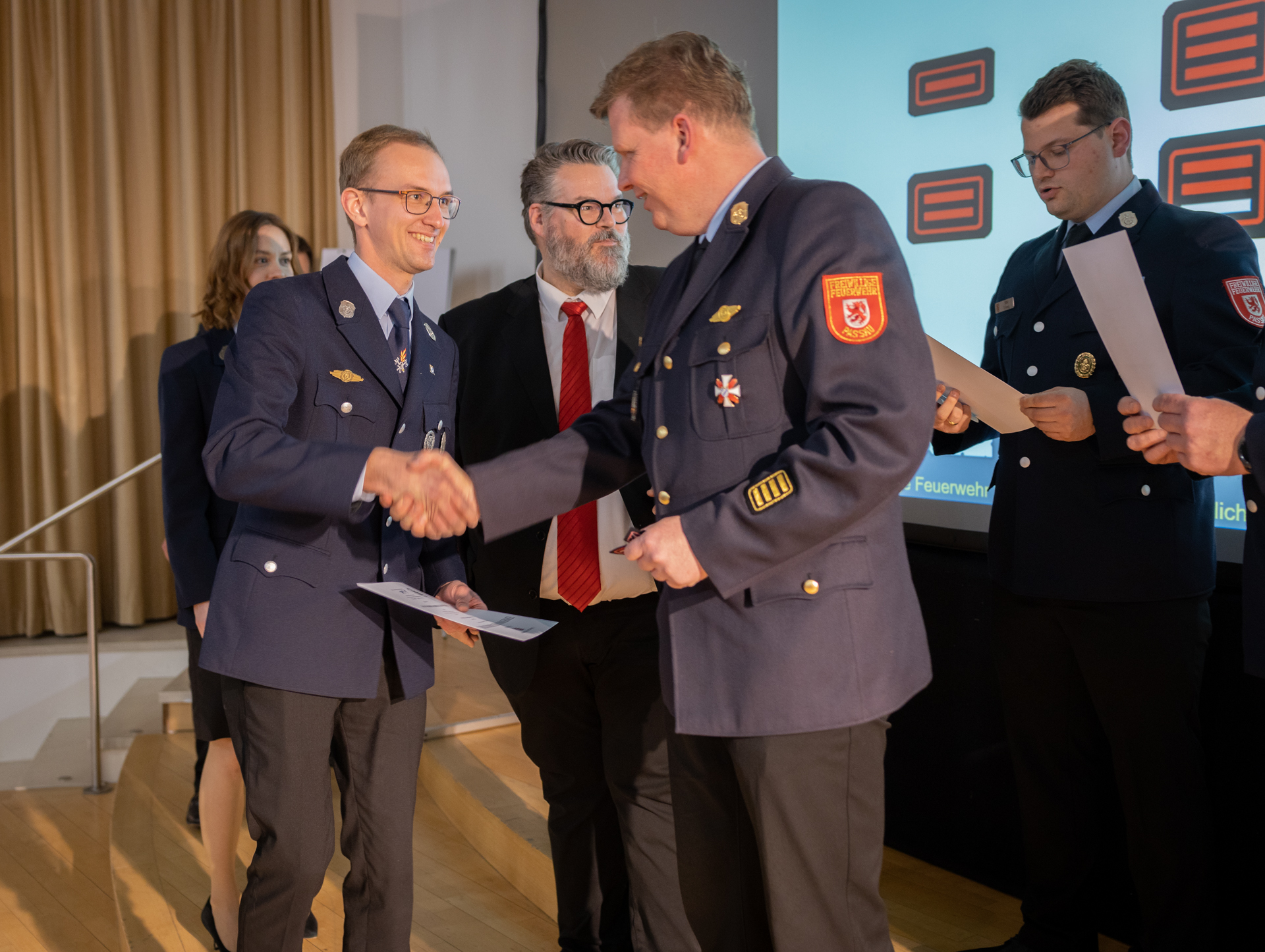 Zum Hauptfeuerwehrfrau befördert wurden Franziska Raith und zum Hauptfeuerwehrmann Markus Waldherr, zum Löschmeister Martin Gahr, Marina Probst, Joseph Sieger, zum Oberlöschmeister Carsten Fussan, zum Hauptlöschmeister Andreas Hühn und zum Brandmeister Thomas Pratsch. Für 30 Jahre aktive Dienstzeit wurden Alexander Hödl und Andreas Wagner, für 40 Jahre Thomas Sageder geehrt, der zudem das Ehrenzeichen des Freistaats in Gold bekam. Das Ehrenzeichen des Freistaats für 25 Jahre erhielten: Stefan Freudenstein, Tobias Keitel und David Stockbauer-Muhr.