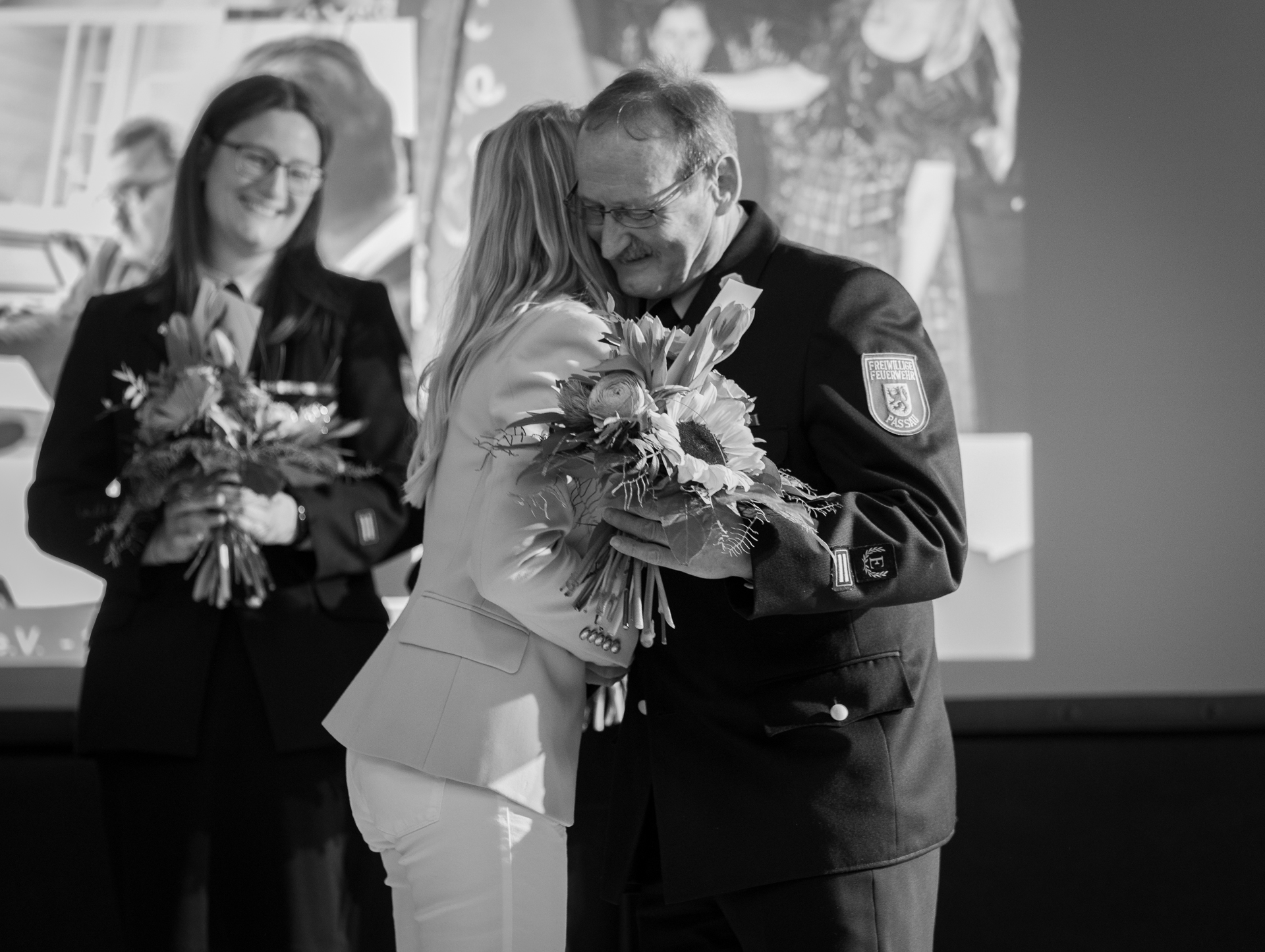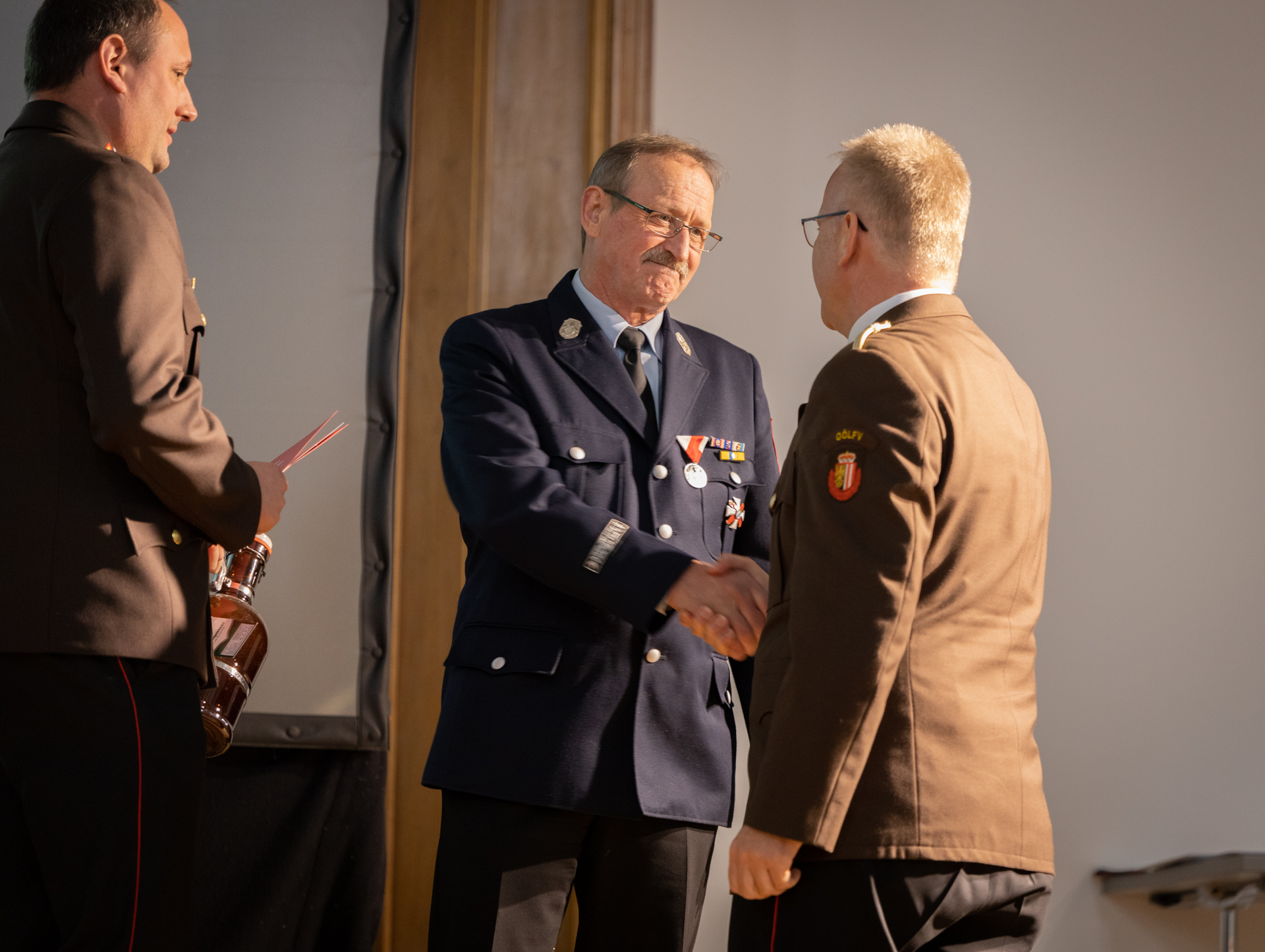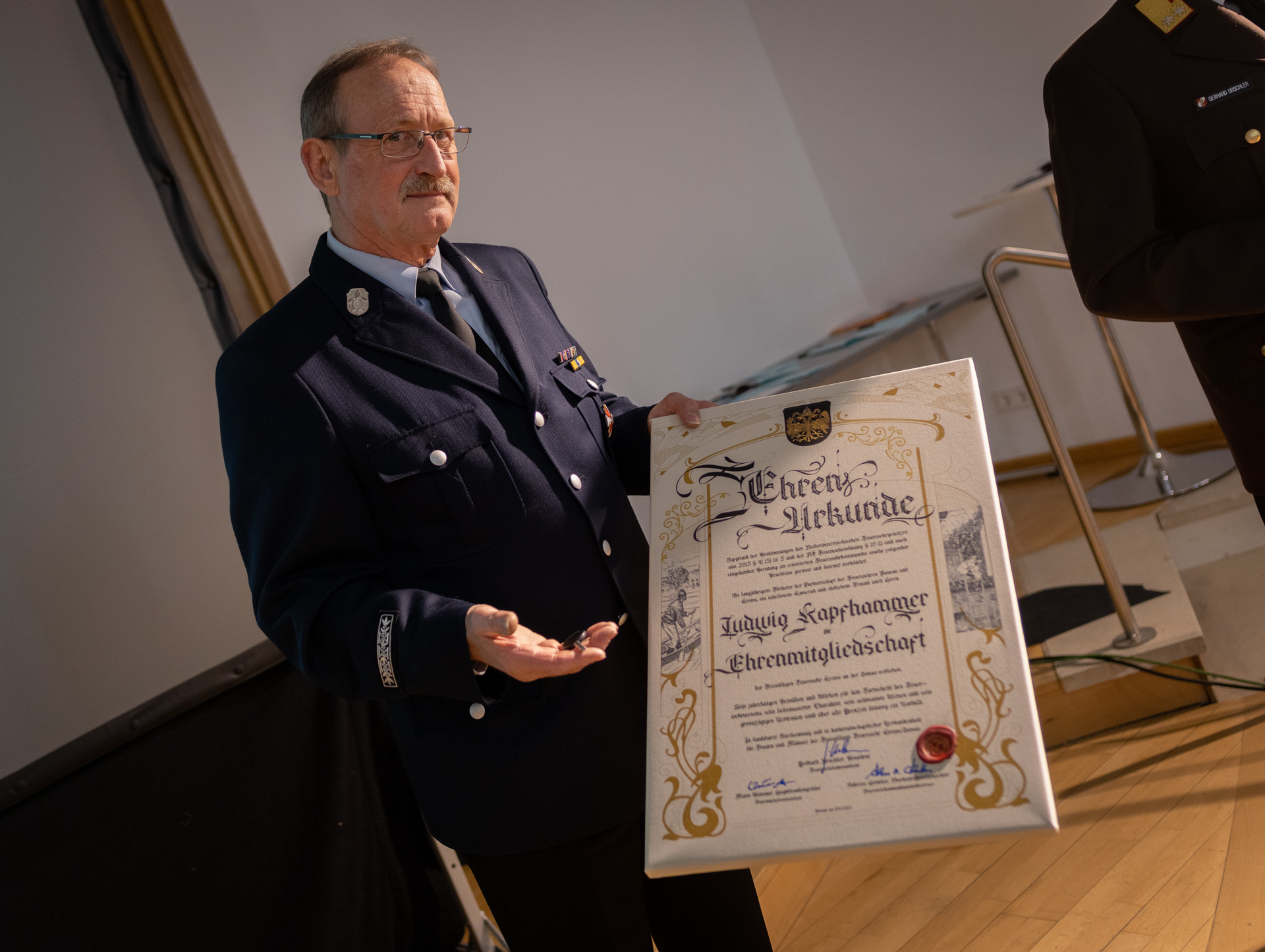 Hochemotional war der Abschied von Ludwig Kapfhammer, der anlässlich der 150 Jahr-Feier der Wehr 2009 den Vorsitz übernommen hatte und nun auf 42 erfüllte Jahre in Uniform zurückblicken konnte. Er sprach von der großen Feuerwehrfamilie und dankte sichtlich bewegt für die gemeinsame Zeit. Blumen und Geschenkkörbe gab es für seine engsten Mitstreiter sowie für Fahnenmutter Anna Kapfinger. Spätestens bei diesem Programmpunkt wurde klar, warum die Partnerwehr aus dem österreichischen Krems mit einer so riesigen Delegation angereist war: Kommandant Gerhard Urschler ernannte Kapfhammer zum Ehrenmitglied der niederösterreichischen Wehr, würdigte dessen Kameradschaft und Freundschaft und nannte ihn unter stehendem Applaus ein „Vorbild über Grenzen hinweg“.