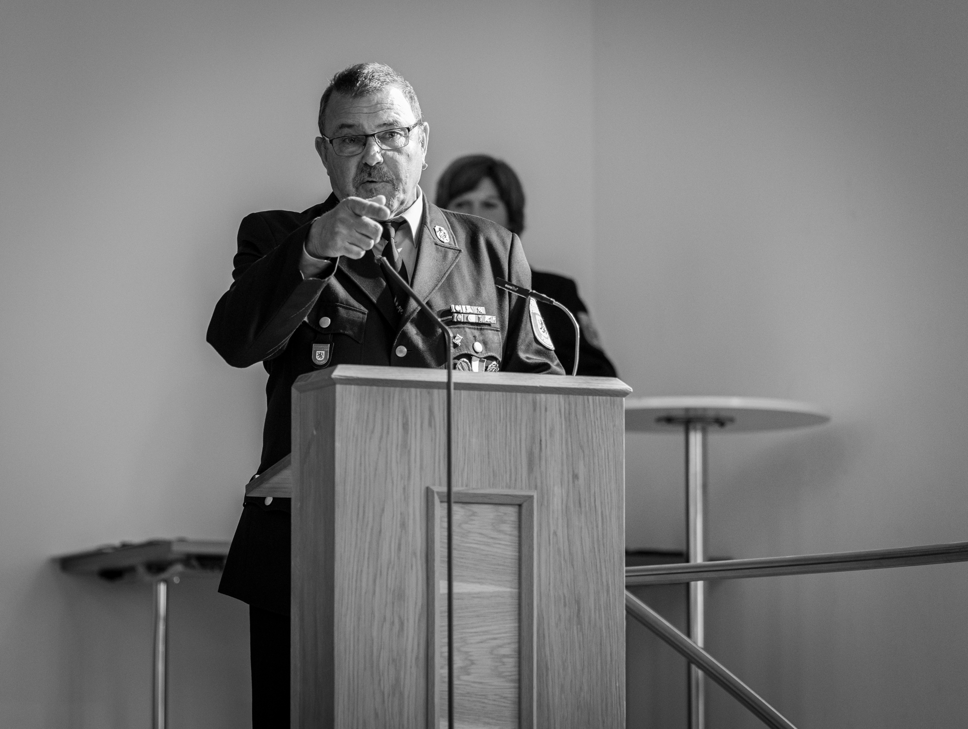 Fast dramatisch dann sein Appell an die Stadtratskollegen, den Neubau des Feuerwehrhauses nicht weiter auf die lange Bank zu schieben: „Das Gebäude ist verbraucht und in desolatem Zustand. Seien Sie sich bewusst, dass in einer Zeit, in der Feuerwehrgerätehäuser mit drei Stellplätzen in einem Stadtteil knapp 3 Millionen kosten, eine solche Wache nicht mit Kosten wie für eine Dreifach-Turnhalle zu realisieren ist. Meine Bitte an Sie: Fällen Sie bald notwendige Entscheidungen und zeigen Sie Ihren ehrenamtlichen Feuerwehrdienstleistenden, auf die Sie sich jederzeit verlassen können, eine Perspektive auf.“