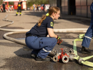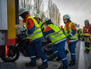 Bei diesen Ausbildungsprüfungen steht die präzise, feuerwehrtaugliche Leistung mit dem zur Verfügung gestellten Gerät und Fahrzeug im Vordergrund. Um die Ausbildungsqualität sicherzustellen und die Zusammenarbeit im Einsatzfall optimal vorzubereiten.