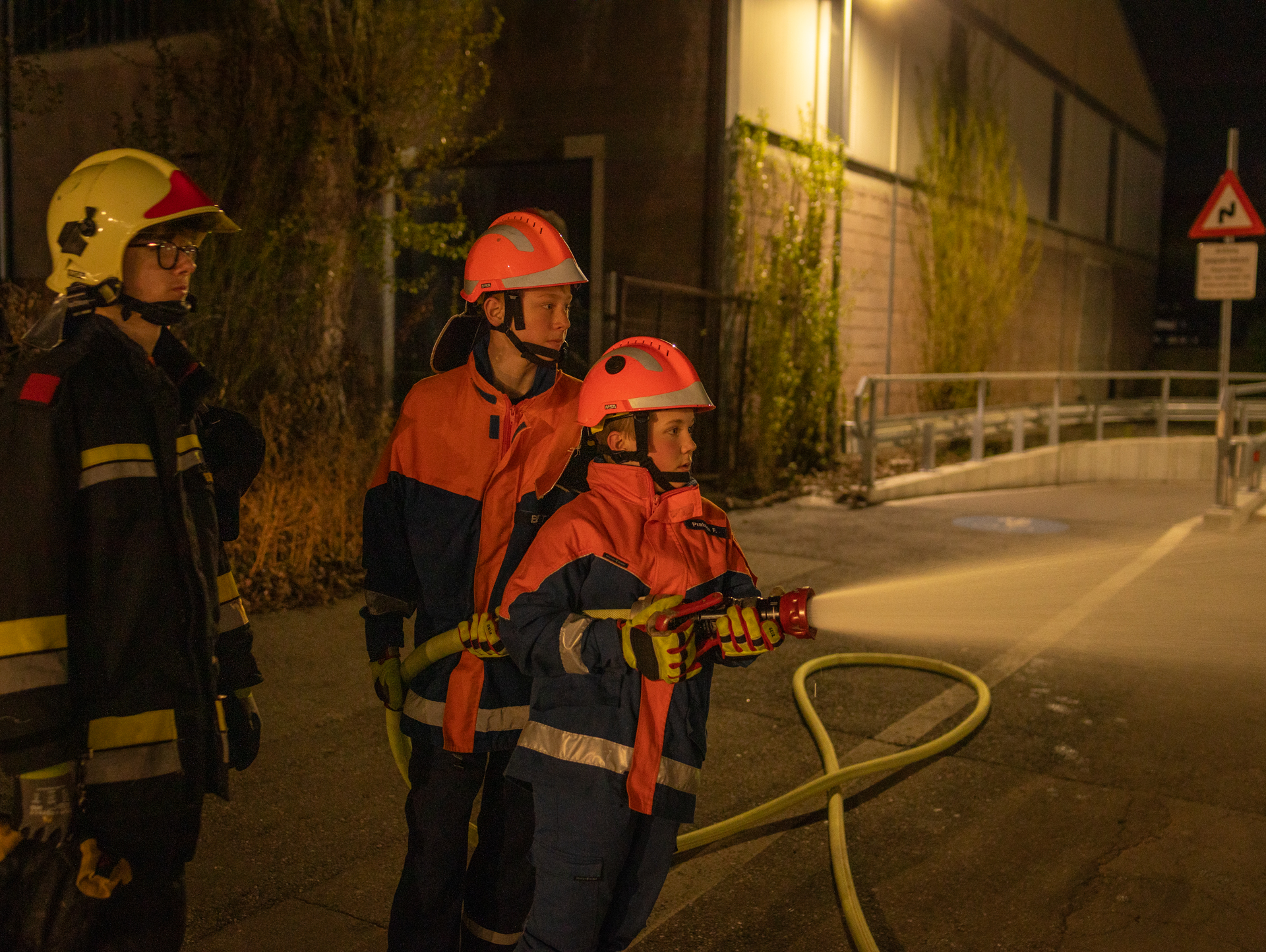 Und auch die jüngeren Mitglieder konnten ihr Wissen und Können in einer realitätsnahen Übungslage unter Beweis stellen. Für sie wurde ebenfalls ein realitätsnahes Einsatzszenario organisiert: Am Sonntagabend rückten sie zu einem simulierten Lkw-Brand auf dem Gelände eines Lebensmittelhändlers aus. Im angrenzenden Lager mussten zwei „verunfallte“ Personen gesucht und gerettet werden – eine Aufgabe, die die Nachwuchskräfte mit beeindruckender Disziplin und Souveränität meisterten.