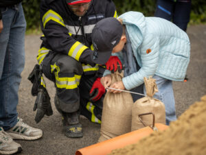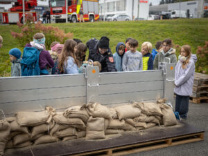 An insgesamt 18 interaktiven Stationen konnten die Kinder und Jugendlichen selbst erfahren, wie mächtig Wasserkräfte wirken, wie Rückhaltebecken und mobile Schutzwände funktionieren, warum Strom und Wasser eine gefährliche Mischung sind – und wie Sandsäcke richtig gefüllt und verbaut werden.
