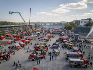 Rund 100 Einsatzfahrzeuge und Module – von klassischen Löschfahrzeugen bis hin zu modernster Robotertechnik, Booten und Hochwasserlösungen – wurden ausgestellt. Die Besucher konnten die Fahrzeuge hautnah erkunden, innovative Technik entdecken und sich mit Fachleuten aus Feuerwehr, Industrie und Katastrophenschutz austauschen.