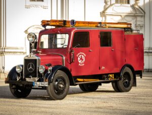 Das Leichte Löschgruppenfahrzeug (LLF 1500), Baujahr 1940, wurde am 20. Juli 1942 bei der Freiwilligen Feuerwehr Passau in Dienst gestellt. In den letzten Kriegstagen im Mai 1945 war es im Einsatz, als Bombenangriffe Teile der Stadt zerstörten. Feuerwehrmänner kämpften gegen Brände und retteten Menschen aus den Trümmern. Mit an vorderster Front: ein Mercedes LLF 1500. Ein bulliger Daimler, der das Sindelfinger Werk 1940 als Leichtes Löschgruppenfahrzeug verlassen hatte.
