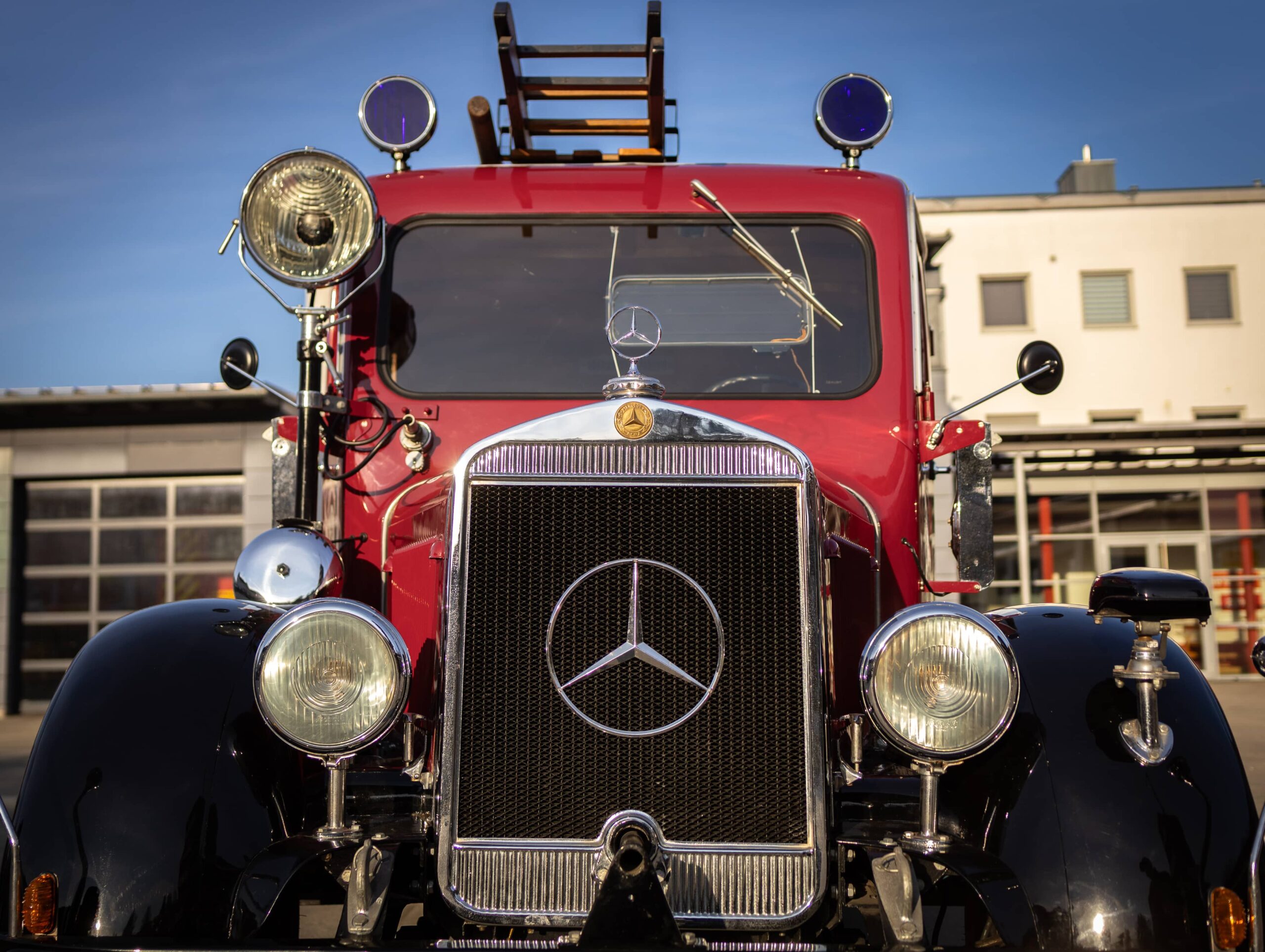 Das Leichte Löschgruppenfahrzeug (LLF 1500), Baujahr 1940, wurde am 20. Juli 1942 bei der Freiwilligen Feuerwehr Passau in Dienst gestellt. In den letzten Kriegstagen im Mai 1945 war es im Einsatz, als Bombenangriffe Teile der Stadt zerstörten. Feuerwehrmänner kämpften gegen Brände und retteten Menschen aus den Trümmern. Mit an vorderster Front: ein Mercedes LLF 1500. Ein bulliger Daimler, der das Sindelfinger Werk 1940 als Leichtes Löschgruppenfahrzeug verlassen hatte.
