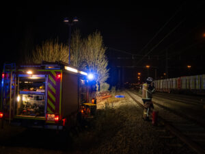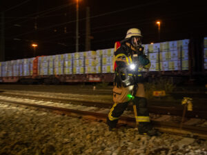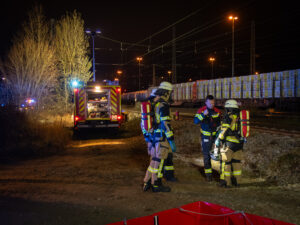 Einsatz am frühen Donnerstagmorgen: Dort waren an zwei mit mehreren tausend Litern Kerosin gefüllten Waggons eine Undichtigkeit festgestellt worden, es tropfte heraus.