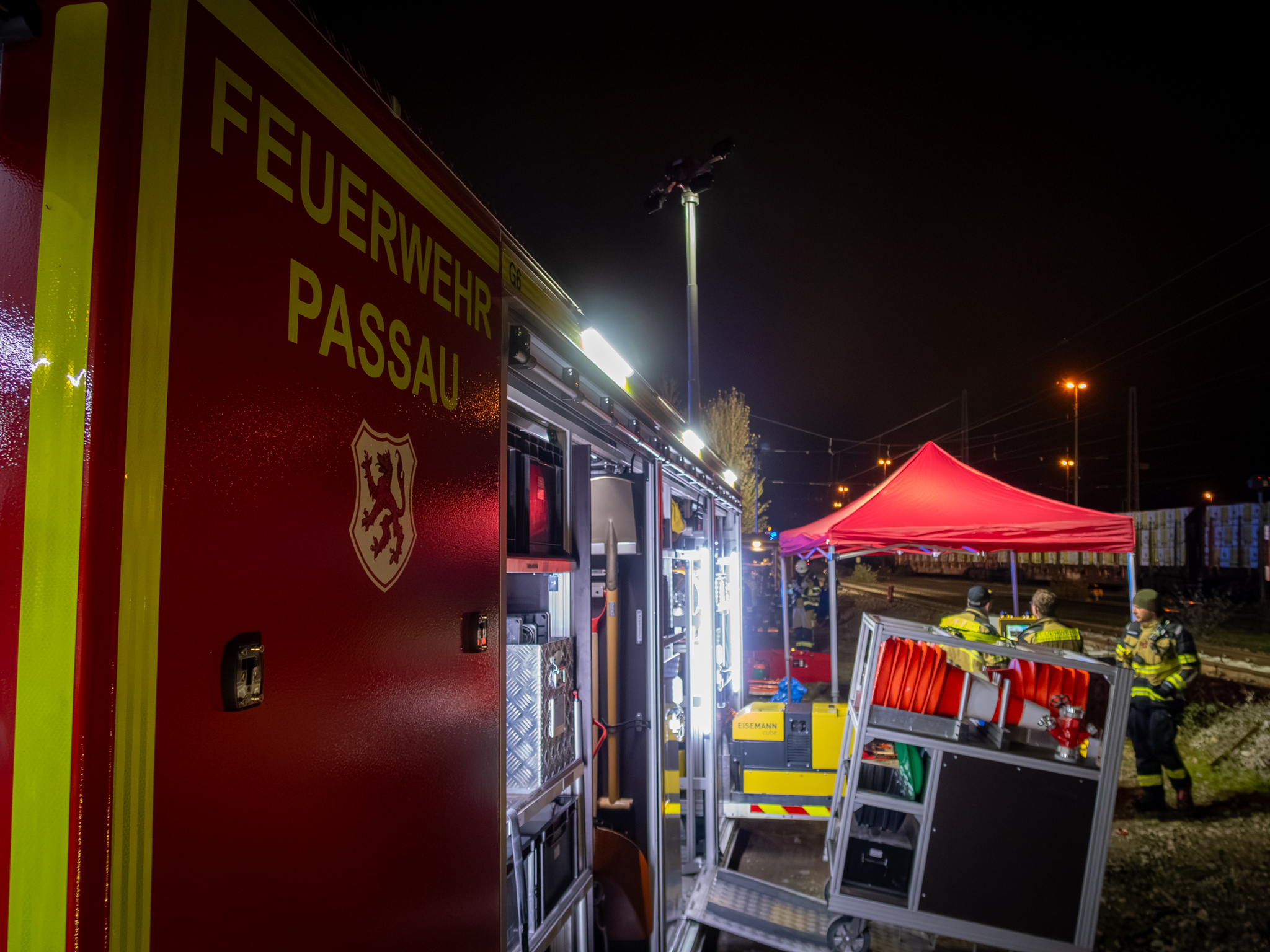 Einsatz am frühen Donnerstagmorgen: Dort waren an zwei mit mehreren tausend Litern Kerosin gefüllten Waggons eine Undichtigkeit festgestellt worden, es tropfte heraus.