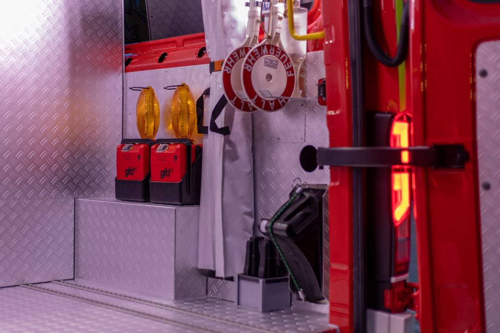 - einsetzbarer Tisch (bei Verwendung als Führungsfahrzeug)