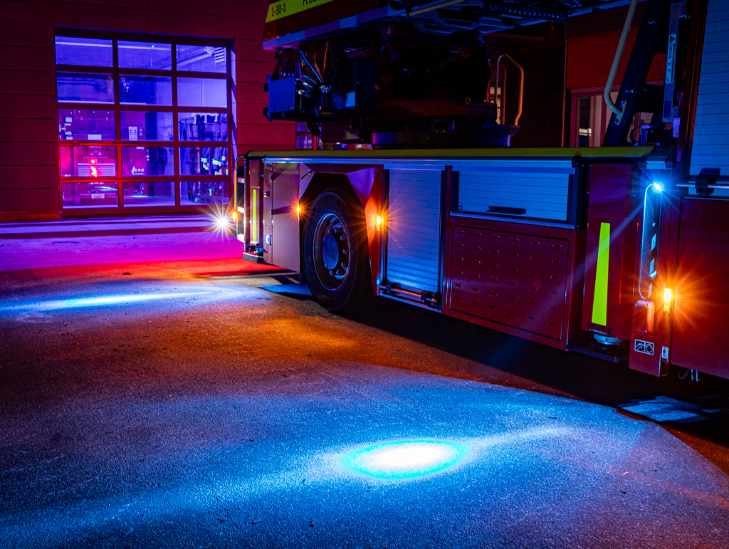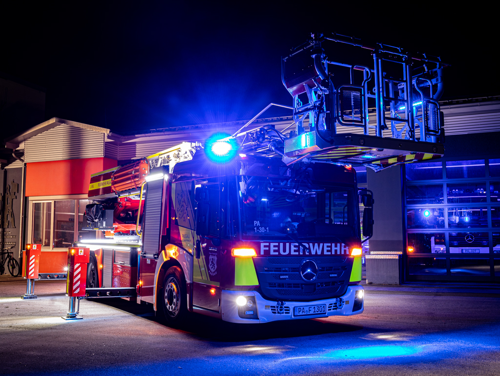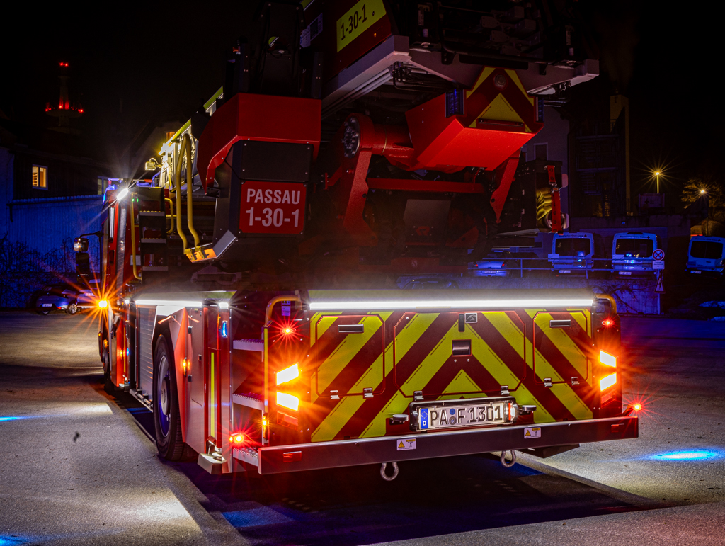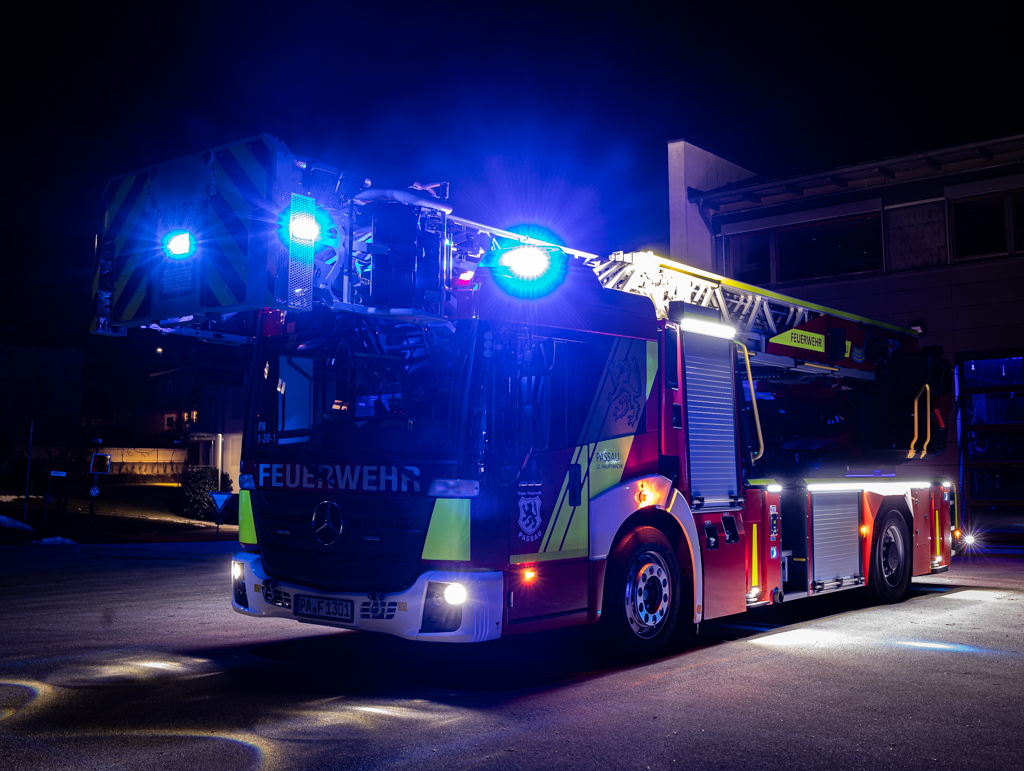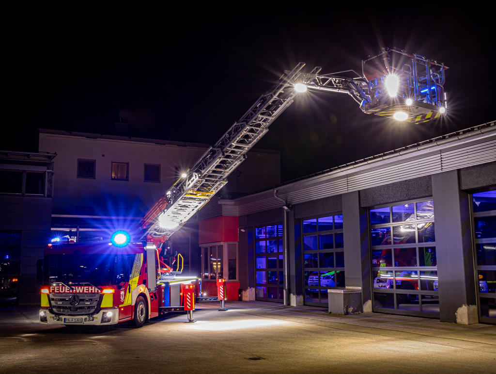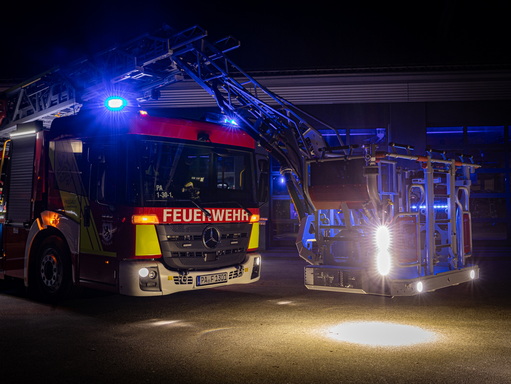 • Leistungstarke LED Beleuchtung an Podium, Leiterpark und Rettungskorb