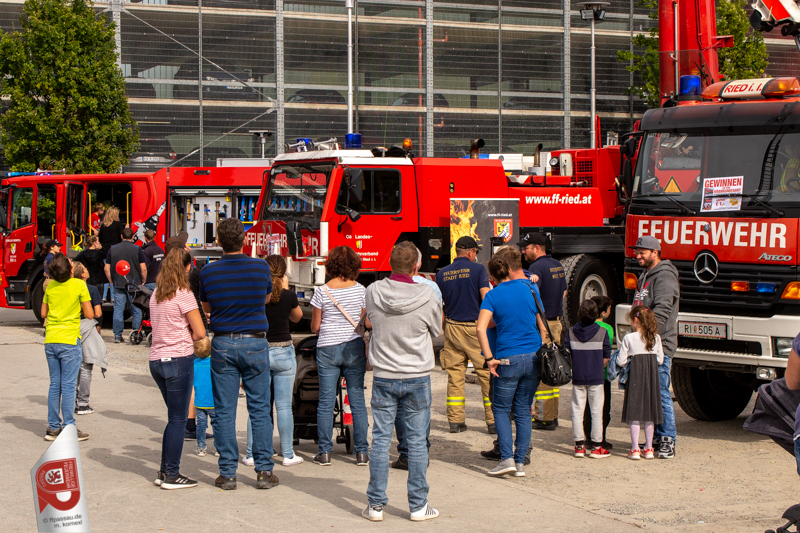 Alle Stationen waren über den gesamten Tag bestens besucht. Vor allem die Hüpfburgen, der Kletterturm und die Vorführungen der Bundespolizei erfreuten sich größter Beliebtheit. Die Rundfahrten mit dem Kran der Feuerwehr Ried waren wie auch die Fahrzeuge der Berufsfeuerwehr Linz ein Publikumsmagnet.
