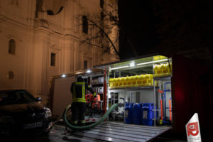 Besonderes Augenmerk dieser groß angelegten Übung – da mitunter die größte Herausforderung – galt der notwendigen Löschwasserzufuhr. Neben der Versorgung über die städtische Hauptleitung sollte das Wasser aus den nahegelegenen Flüssen Inn und Donau den notwendigen Nachschub sicherstellen. Zum Einsatz kam mitunter die Hochleistungspumpe Hydrosub, welche Wasser über eine Schlauchlänge von rund 500 Metern durch die Passauer Altstadt transportiere. Kurzzeitig negativ beeinflusst durch einen Schlauchplatzer. Herbeigeführt durch einen rücksichtslosen Autofahrer, welcher mit seinem Fahrzeug trotz allen Hinweisen über die Schlauchleitung gefahren war. Die mitunter wackelige Funkverbindung im Übungsgebiet wird ebenfalls nochmals genauer zu betrachten sein.