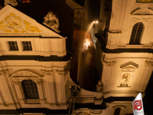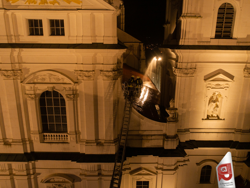 Für das Übungsszenario ging man davon aus, dass ein Blitzschlag das Mittelschiff des Passauer Stephansdomes in Brand gesetzt hatte.