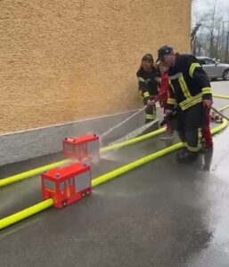 Ziel war es, gemeinsam Minifeuerwehrautos zu bauen, die durch Anspritzen betrieben werden. Die Rennstrecke wird dabei durch B-Schläuche festgelegt.