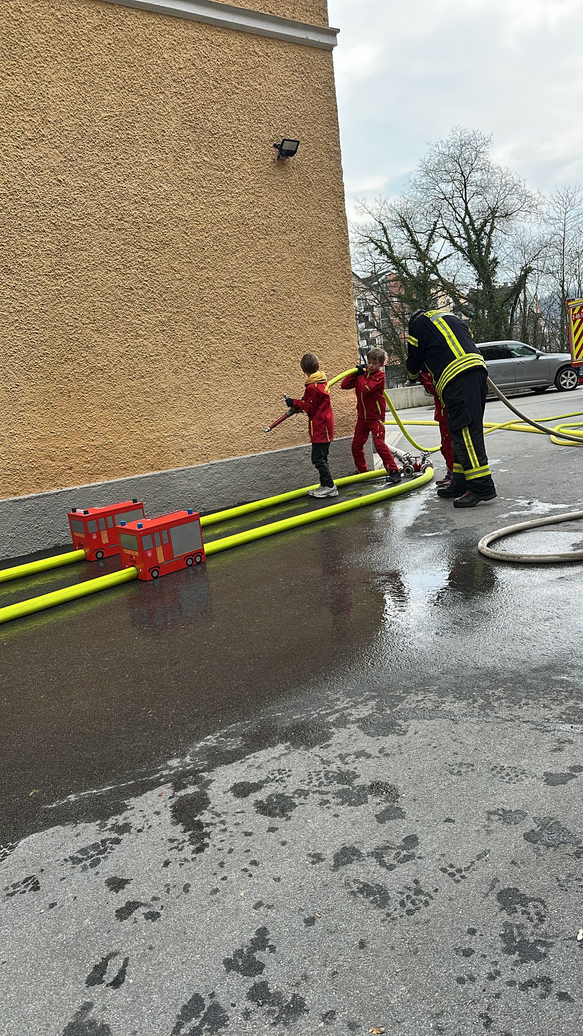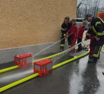 Ziel war es, gemeinsam Minifeuerwehrautos zu bauen, die durch Anspritzen betrieben werden. Die Rennstrecke wird dabei durch B-Schläuche festgelegt.